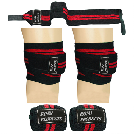 Weight Lifting Knee Wraps Wrist Support Cotton Bandage Straps Pair Set Red Black