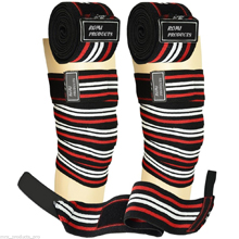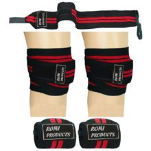 Weight Lifting Knee Wraps Wrist Support Cotton Bandage Straps Pair Set Red Black